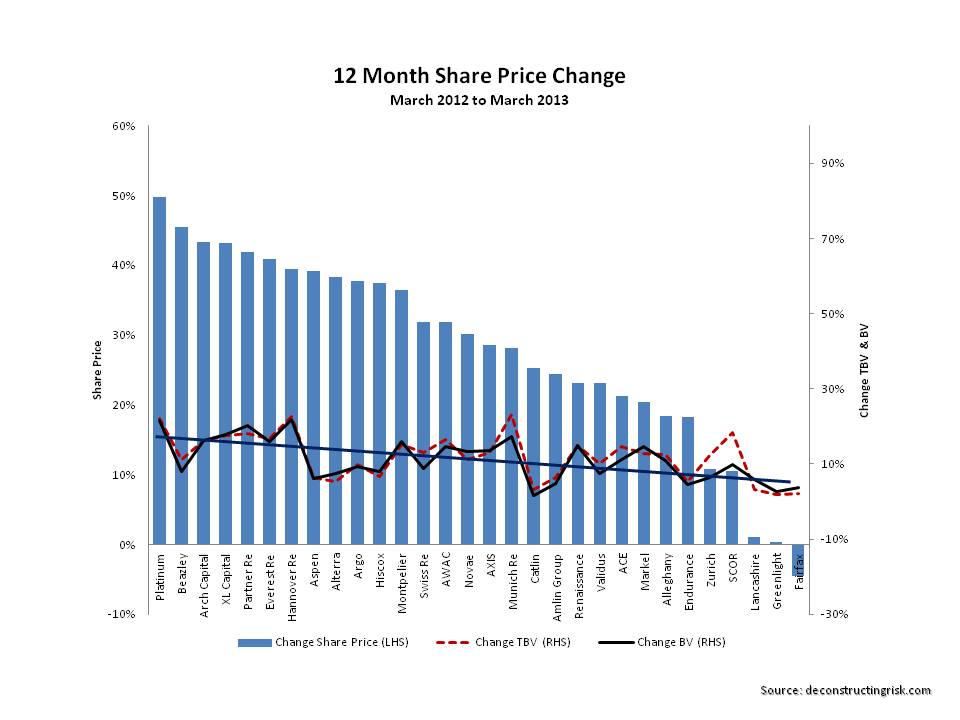 Share Price Change Reinsurers & Wholesale Insurers March 2012 to March 2013