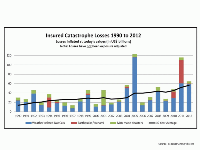 1990 to 2012 historical insured catastrophe losses Swiss Re