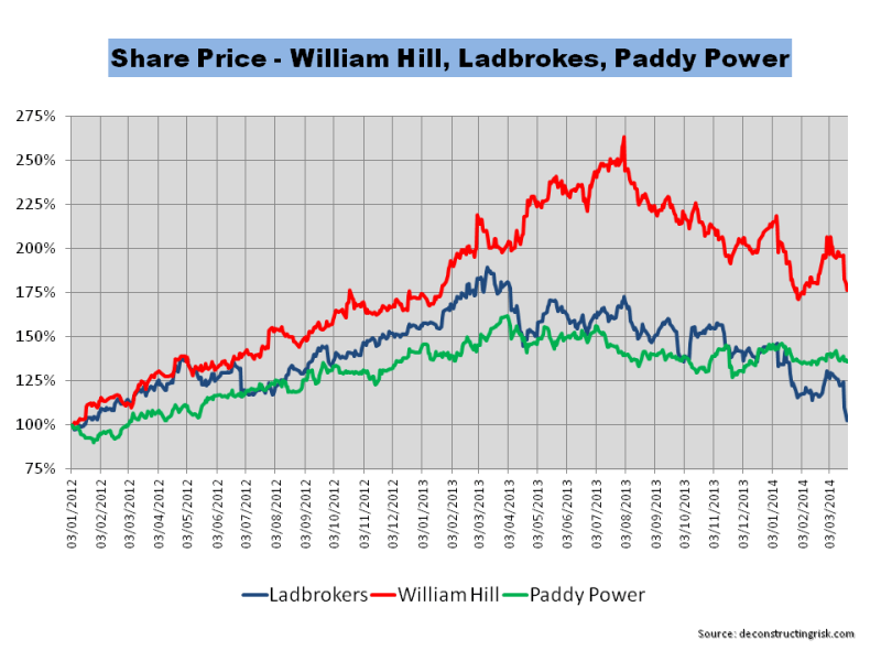 Share Price 2012 to March2014 William Hill Ladbrokes Paddy Power
