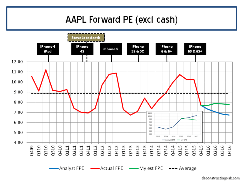 AAPL Forward 12 Month PE Ratios Q4 2015