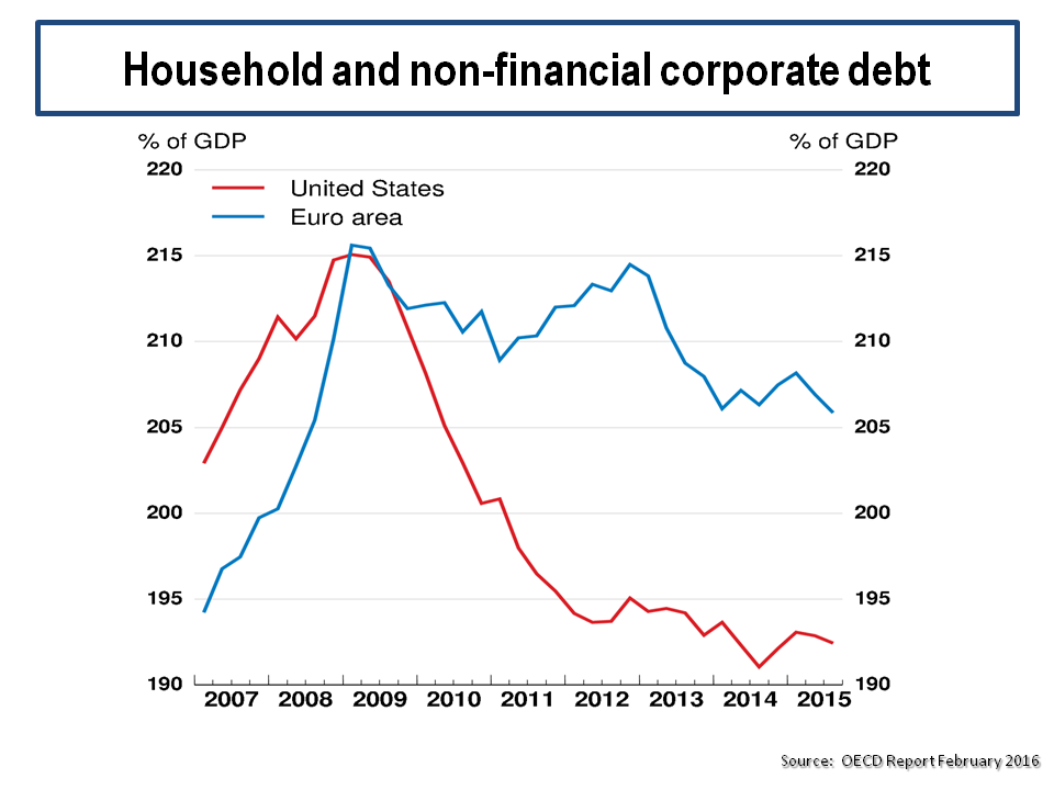 The OECD interim economic outlook by Catherine Mann on 18th February recommended “maintaining accommodative monetary policy, supportive fiscal policies on investment led spending and more ambition on structural policies which raise global growth and reduce financial risks”. Ah, yes the old structural reform answer to all of our ills. The OECD gave some graphic reminders of where we are, as below.