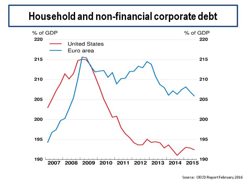 US & Euro Household & Nonfinancial Corporate Debt 2015