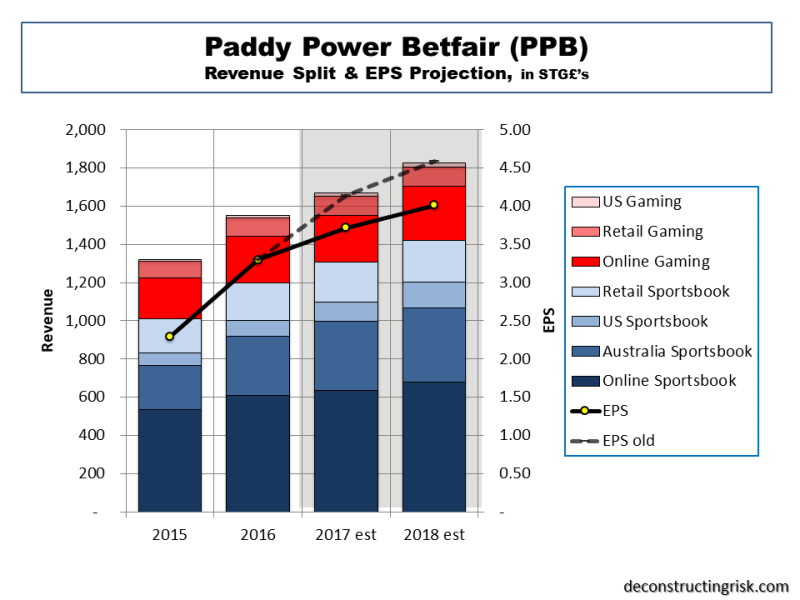Paddy Power Betfair 2015 to 2018 Revenue Split & EPS projection NEW