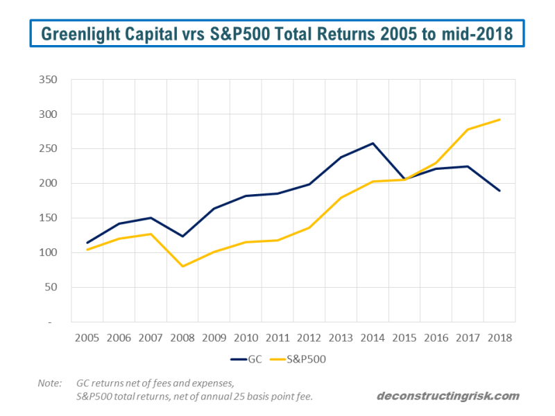 Greenlight Capital vrs S&P500 Total Return 2005 to mid2018