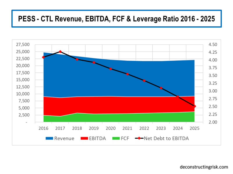 Pessimistic Scenario CTL Revenue EBITDA FCF Leverage 2016 to 2025