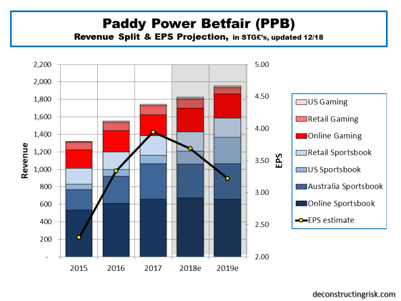 Paddy Power Betfair 2015 to 2019 Revenue Split & EPS projection updated 12_2018
