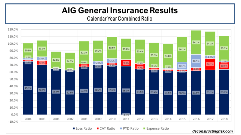 AIG General Insurance Combined Ratio Breakdown 2004 to 2018