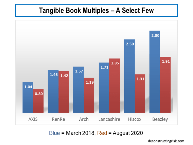 Tangible Book Multiples for select specilaty insurers and reinsurers