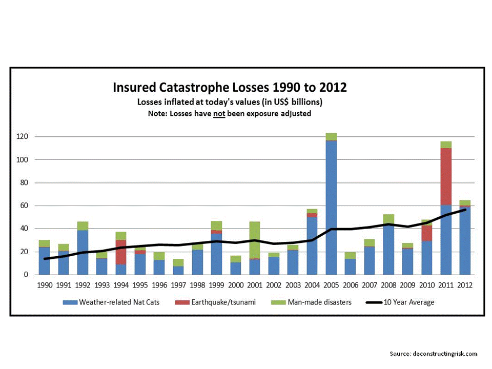 As I have highlighted many times previously here, inflated losses (i.e. bringing historical costs into today’s value) are not a true indicator of current risks as the historical losses need to be exposure adjusted (i.e. historical events run through models with today’s exposure date).