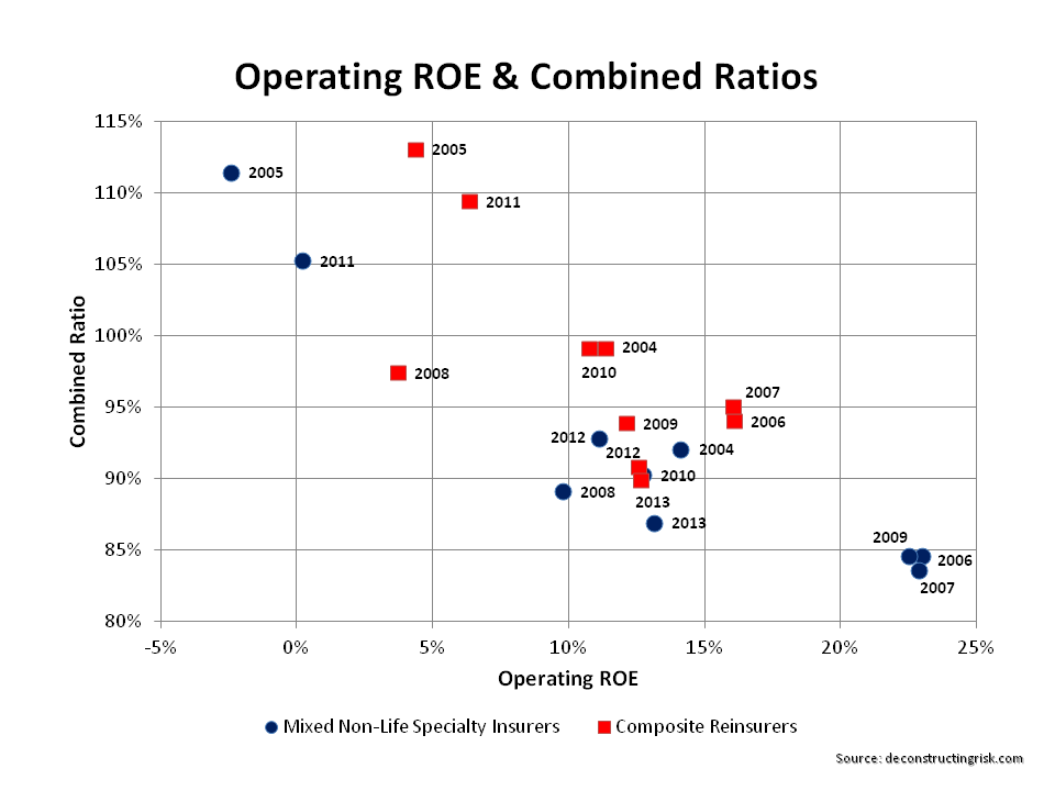 The striking thing about the current valuations of the US/Bermudian bucket is how concentrated they are, particularly when compared to 2011. The market seems to be making little distinction between the large reinsurers like Everest and the likes of Platinum & Montpelier. That is surely a failure of these companies to distinguish themselves and effectively communicate their differing business models & risk profiles.