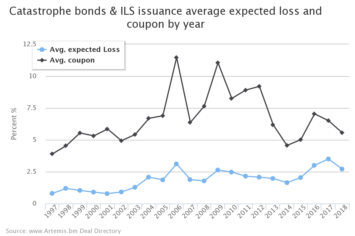 Whether reinsurers and specialty insurers will be able to maintain superior (albeit just above CoC) recent returns over ILS, as illustrated in this post, through arbitrating lower return ILS capital or whether their bloated costs structures will catch them out will be a fascinating game to watch over the coming years. I found a section of a recent S&P report, part of their Global Highlights series, on cat exposures in the sector, amusing. It stated that in 2017 “the reinsurance industry recorded an aggregate loss that was assessed as likely to be incurred less than once in 20 years” whilst “this was the third time this had happened in less than 20 years“.