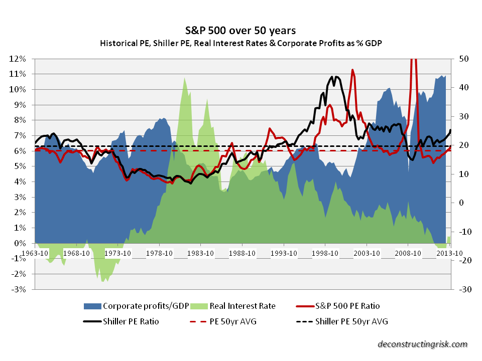 Bianco, who has a 2014 end target of 1850 and a 2015 end target of 2000 for the S&P500, concluded that 75% of the S&P500 rise in 2013 is from PE expansion and that “this is the largest [valuation multiple] contribution to market return since 1998. Before assuming further [multiple] expansion we think it is important that investors be confident in healthy EPS growth next year. Hence, we encourage frequent re-examination of the capex and loan outlook upon new data points.”