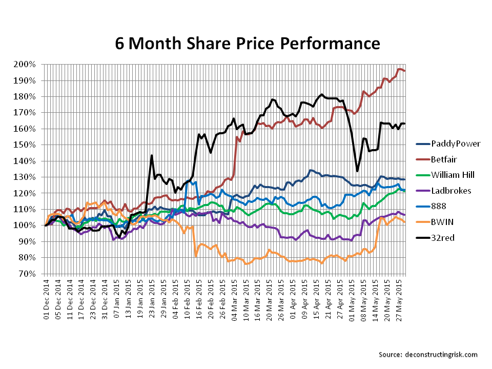 click to enlargeShare Price 6months to May 2015 William Hill Ladbrokes Paddy Power Betfair 888 BWIN 32red