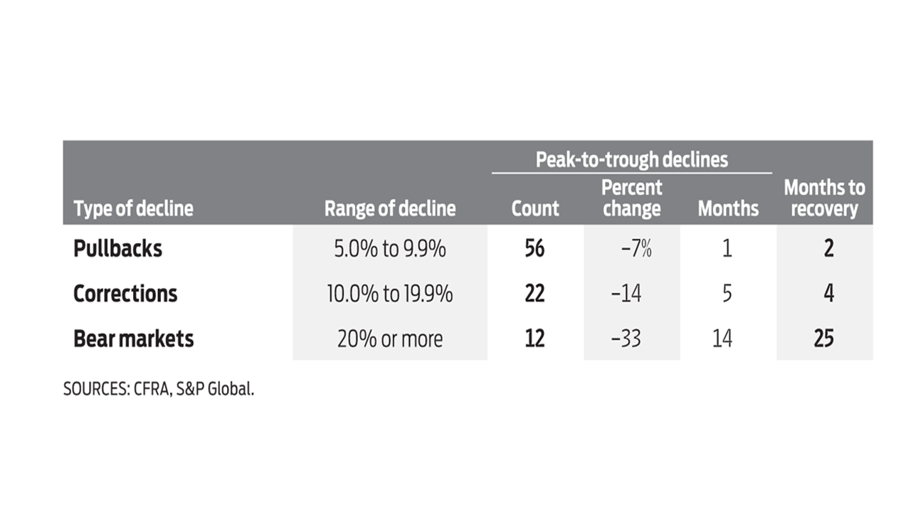 Historically, a non-recessionary bear market lasts on average 7 months according to Ed Clissold of Ned Davis Research (see their 2019 report here). According to Bank of America, since 1950 the S&P 500 has endured 11 retreats of 12% or more in prolonged bull markets with these corrections lasting 8 months on average. The exhibit below suggests that such corrections only take 5 months to recover peak to trough.