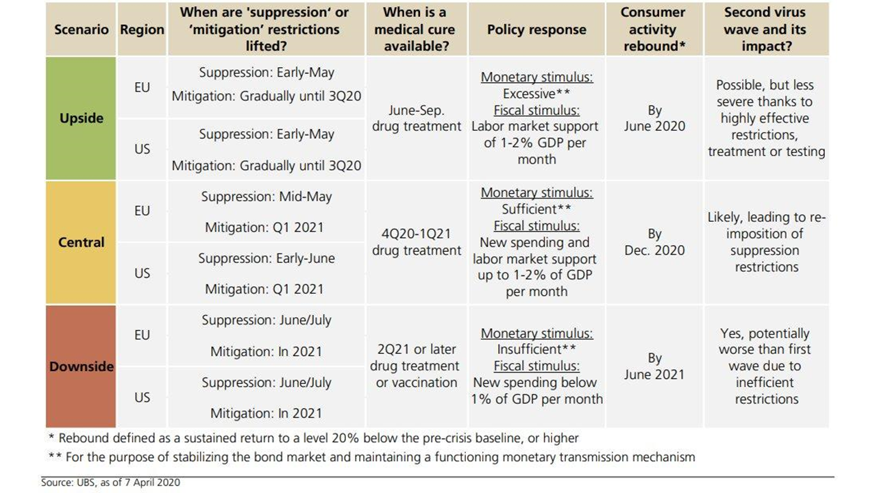 The IMF “baseline” assumes a broad economic reopening in the H2 2020. The IMF also details 3 alternative scenarios:
