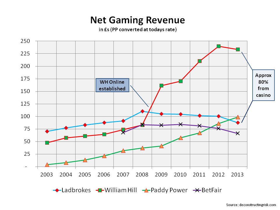 One of the things that stand out is how Betfair’s margin has improved, despite the recent headwinds such as the UK point of consumption (POC) tax. Indeed the market view that Betfair CEO Breon Corcoran is the new messiah can best be illustrated in the graph below on the firm’s performance since he took charge (revenue in sterling). It shows solid revenue growth (particularly from sustainable markets) and the incredible recent growth in EBITDA margin despite the drag of 9% of EBITDA margin from the POC tax.