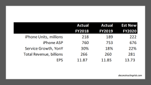 In my defence, the graph below of the actual results for FY2019 illustrate how the issues that confronted AAPL at that time played out (more on the estimates for 2020 later).